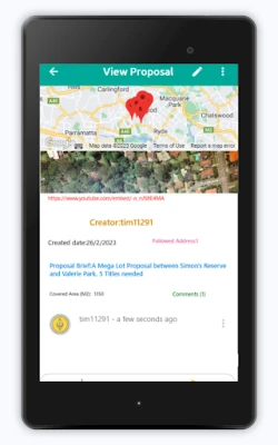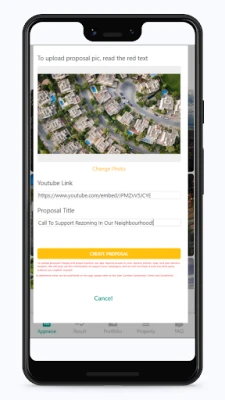 Our app is a social app that helps transform your neighbourhood into a prosperous and thriving community. With the app, users can create campaign proposals using their property address or a nearby public landmark as a starting and targeting point within a specific area. The app provides public data and desired constraints to rank each potential target point, making it easier for users to choose the location with the most potential.